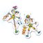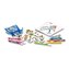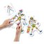 Zestaw kreatywnych puzzli w pudełku o wymiarach 20,7x27x5 cm. Zawiera 12 marketów w różnych kolorach, torebkę na przechowywanie puzzli lub markerów oraz 5 arkuszy z puzzlami i postaciami do pokolorowania i zabawy. Dla dzieci od 4 roku życia.