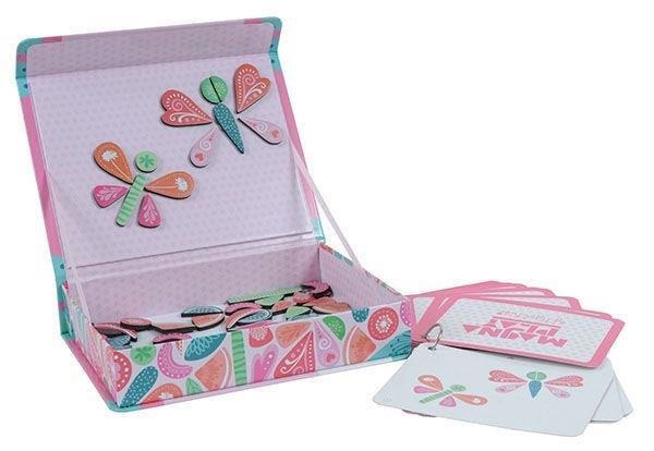 Przenośna zabawka - wygodna walizeczka, która przetrwa wszystkie trudy podróży. Magnetyczne kształty, z których można układać dowolne wzory, zgodnie z podpowiedziami naszej wyobraźni lub wg instrukcji - kart zawartych w zestawie.
