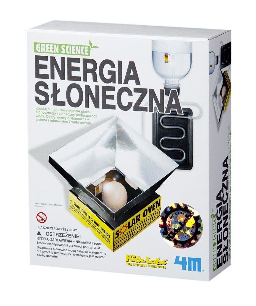 Łatwe do nauki.. Łatwe do wykonania i przyswojenia wiedzy... Zestaw do samodzielnego wykonania modelu Pieca Słonecznego i Podgrzewacza wody. Zbuduj miniaturowe modele pieca słonecznego i słoneczny podgrzewacz wody.Odkryj energię słoneczną - zielone i odnawialne źródło energii. Baw się i ucz jednocześnie! Zawartość: 1 pudełko kartonowe 4 srebrne karty 1 czarny panel z osłoną 1 łacznik do butelki, miękki wosk z taśmą klejącą, 2 naklejane termometry (z nadrukami 70°C I 40°C) 1 przeźroczysta pokrywa z plastiku 1 zakrętka z dwoma otworami 1 przezroczyta rurka 1 mały kwadrat I 1 duży kwadrat z czarnego papieru z instrukcją z ciekawostkami.