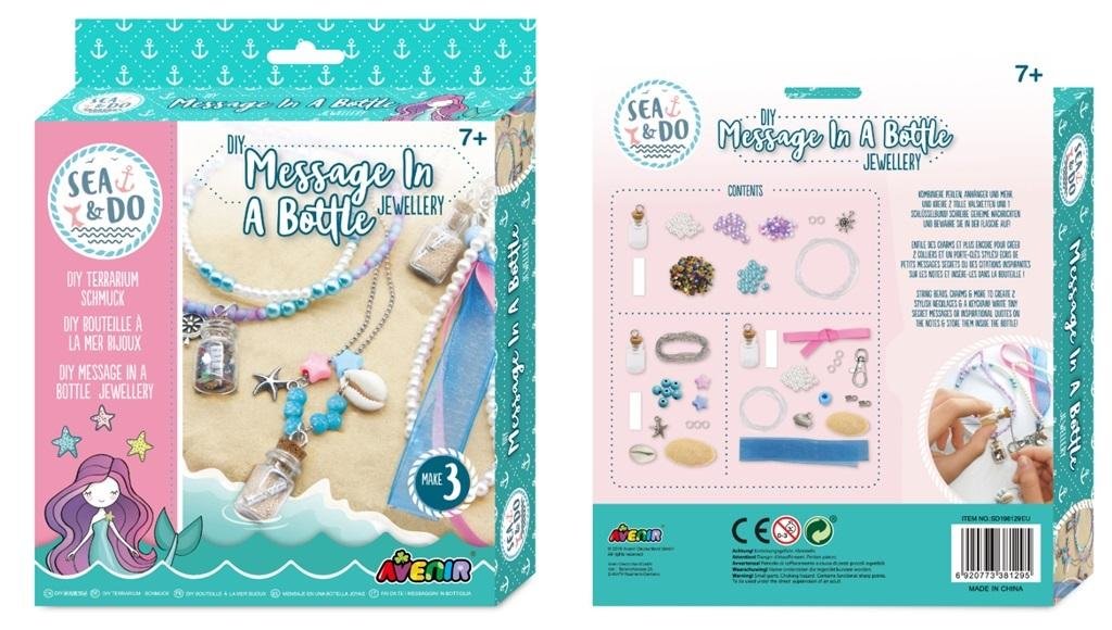 Seria Sea&Do przenosi nas do przepięknego, pastelowego świata wody i piasku. Wiadomość w butelce to produkt, w którym estetyka pełni główną rolę. Zestaw będzie idealnym prezentem dla dziewczynek, które lubią prace ręczne i niebanalną biżuterię. Dzięki zestawowi może stworzyć swoje własne stylowe naszyjniki i breloczki z motywem wakacji i oceanu. Na dodatek na malutkich kawałeczkach papieru może napisać sekretne wiadomości i umieścić je w buteleczce! To dopiero biżuteria ze znaczeniem! W zestawie znajdują się półfabrykaty do stworzenia biżuterii: koraliki, zapięcia, zawieszki, buteleczki, piasek, kółeczka. Wiek: 7+