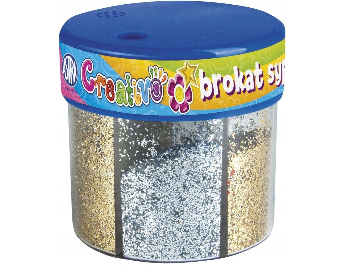 Przeznaczone do prac plastycznych, ozdób choinkowych, kartek świątecznych, papieru, scrapbookingu, przedmiotów z gliny, masy solnej. Pojemniki z otworami ułatwiającymi dozowanie brokatu.
