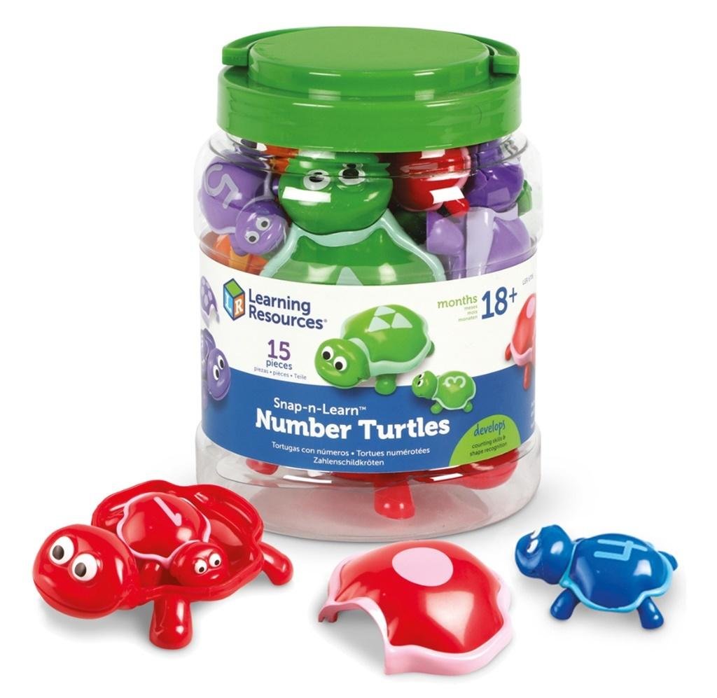 Żółwie, Figurki do nauki liczenia i rozpoznawania kolorów i kształtów. Nauka przez zabawę! Learning Resources(R) to producent bezpiecznych, edukacyjnych i innowacyjnych zabawek, którym zaufali rodzice i nauczyciele na całym świecie. Baw i Ucz się! Learning Resources(R) - tworzy zabawki edukacyjne pomagające pokochać naukę. Zabawa w liczenie może być inspirująca. Zestaw edukacyjny do nauki liczenia, nazywania liczb, rozpoznawania kształtów i kolorów. Zestaw zawiera 10 żółwi, o rozmiarze: 5,5 cm x 4 cm - żółw dziecko, 10 cm x 7,5 cm - żółw mama. Małe żółwie oznakowane cyferką od 1 do 5. Żółwie duże zawierają pięć różnych kształtów: koło, prostokąt, trójkąt, kwadrat i pięciokąt. Żółwie wykonano w pięciu kolorach: czerwonym, pomarańczowym, niebieskim, zielonym i fioletowym. Zabawa polega na dopasowaniu dziecka do mamy i ukryciu go pod skorupką. Zestaw wykonany z odpornego na pleśń plastiku. Dodatkowo wyposażony w wygodny słój do przechowywania zamykany wygodną pokrywką z praktycznym uchwytem.