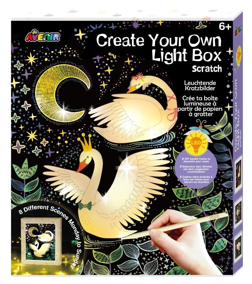 Ramka ze światłem to ciekawa propozycja dla kreatywnych dzieci. Prosta technika wydrapywania pozwala na stworzenie podświetlanego obrazka w ramce przy niewielkim nakładzie pracy. Wydrapywanie pozwala rozwijać kreatywność i zdolności manualne, jest też wspaniałą zabawą wyciszającą. Gotowe obrazki mozna umieścić w ramce i podświetlić, tworząc wyrózniającą się ozdobę pokoju dziecięcego albo wspaniały prezent od serca. W zestawie: 8 obrazków do wydrapywania, ramka, naklejki, 2 patyczki, szmatka do wycierania, lampka. Wiek: 6+