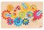 Drewniana plansza z różnokolorowymi kołami zębatymi.