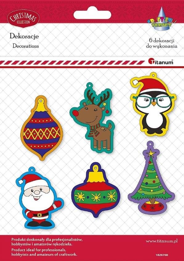 Wzór: bombki, choinka, renifer, pingwin, Mikołaj - 6 elementów