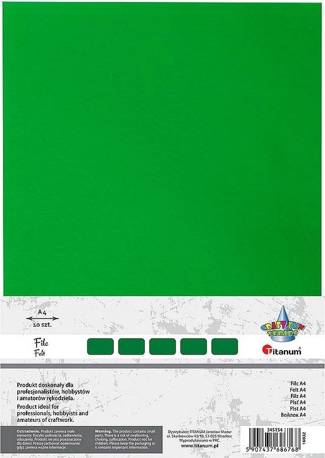 Filc dekoracyjny. Format: A4. Grubość: 2 mm, gramatura: 200 g. Kolor: ciemnozielony. číst celé