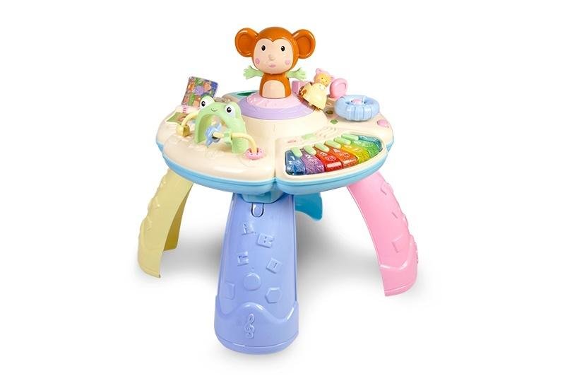 Funkcje: kręcąca się małpka, jeżdżące autko, pianinko uczące liczb, obracające się koło, ruchome elementy w różnych kształtach, sorter, dźwięki, światło, regulacja głośności. číst celé