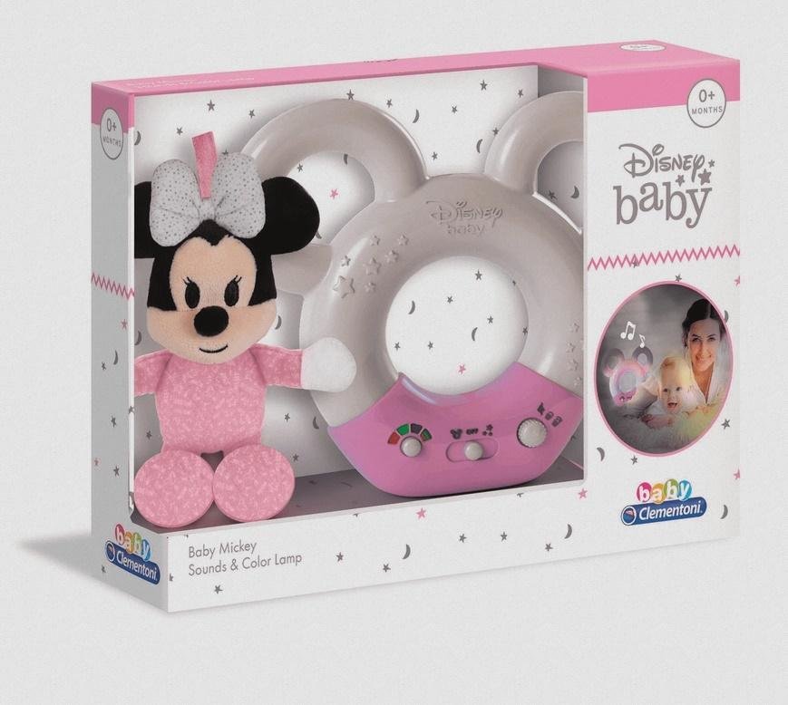 Uroczy, interaktywny projektor Mała Minnie, wyświetlający wiele kolorów, które pomagają dzieciom uspokoić się i zasnąć.