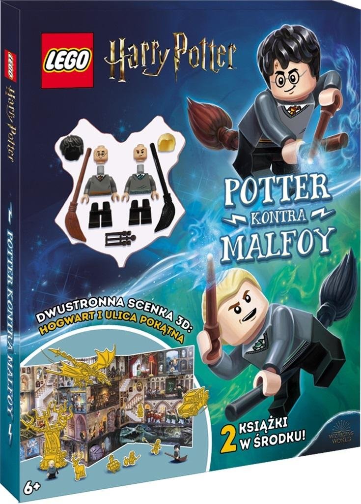 Zestaw książek z rozkładaną scenką 3D i klockami LEGO(R) do kreatywnej zabawy Potter kontra Malfoy przygoda w świecie LEGO(R) Harry\'ego Pottera