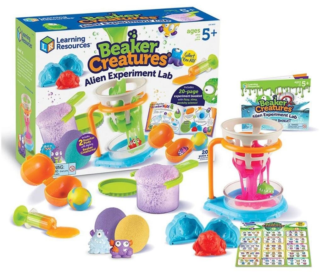 Beakers Creatures, Wielkie Laboratorium Kosmitów, Eksperymenty, Zestaw naukowy. Nauka przez zabawę! Learning Resources(R)to producent bezpiecznych, edukacyjnych i innowacyjnych zabawek, którym zaufali rodzice i nauczyciele na całym świecie. Wielka Laboratorium nie z tego świata! Rozpocznij swoją własną, niesamowitą przygodę z nauką wykorzystując zestaw z kolekcji Beaker Creatures od Learning Resources. Wewnątrz znajdziesz m. in. stanowisko "Slime" do robienia i przelewania "glutów", foremkę do stworków Beaker Creatures, zestaw do tworzenia buzujących kul oraz narzędzia do przeprowadzania eksperymentów. Laboratorium naukowe, w którym można przeprowadzać buzujące, spienione eksperymenty wielokrotnie zawiera: