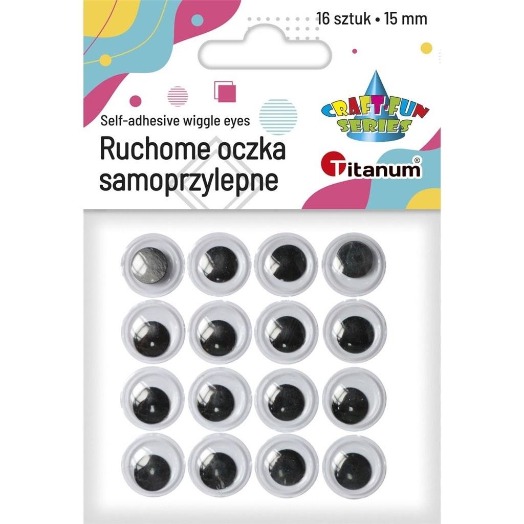 Oczy samoprzylepne, okrągłe, bez rzęs. Średnica: 15 mm. 16 szt. číst celé