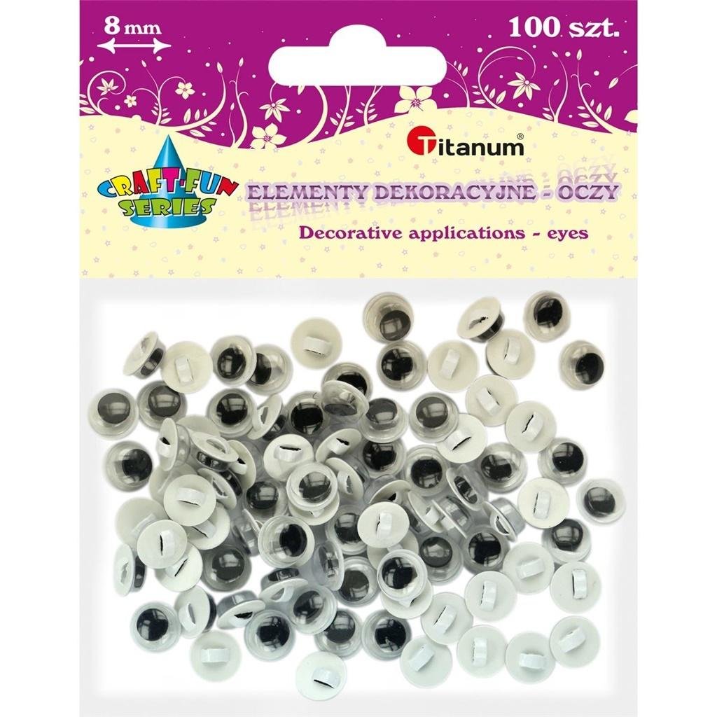 Oczy - guziki bez rzęs 8mm okrągłe 100szt