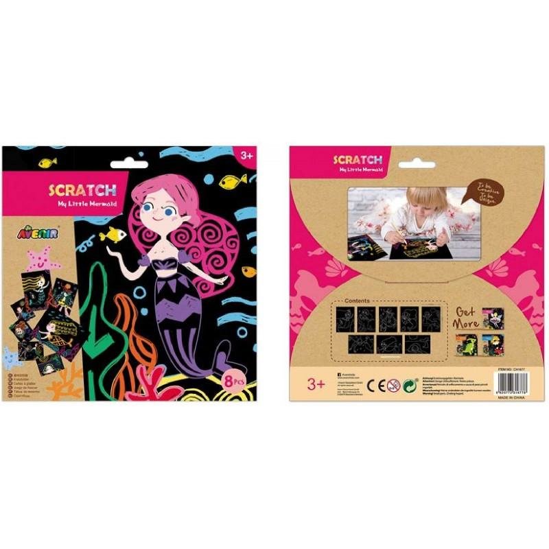 Avenir Scratch to zupełnie nowe podejście do prac ręcznych. Wyjątkowy arkusz, na którym tworzy się poprzez zdrapywanie warstwy wierzchniej, by odsłonić wielobarwną warstwę spodnią. Zabawka kreatywna najwyższych lotów, pozwalająca nie tylko tworzyć piękne prace, ale także dająca doświadczenia sensoryczne - dzięki użyciu odpowiedniego narzędzia i zachowywania się papieru podczas zabawy dziecko odbiera nowe wrażenia dotykowe. W zestawie są arkusze (8 szt.) do zdrapywania z liniami pomocniczymi oraz patyczek do zdrapywania. Dla dzieci powyżej 3. roku życia. Opakowanie: 23 x 23 cm.