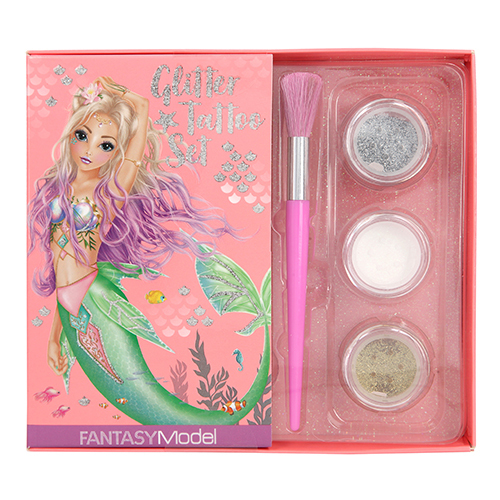 Sada třpytivého tetování Fantasy Model Mořská panna, štětec, 3 třpytky, 54 šablon