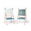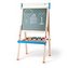 Tabule Woody je praktickým pomocníkem, který nabízí dvě odlišné plochy - z jedné strany zelenou tabuli pro psaní křídami a z druhé bílou magnetickou plochu vhodnou pro použití fixou. Díky zabudované tyčce pro upevnění role papíru si děti mohou snadno odvíjet papír, na který mohou malovat nebo kreslit. Součástí balení jsou také magnetická písmena, bílé křídy, fix, houbička a kelímky na vodu a barvy - vše, co vaše děti potřebují pro kreativní zábavu doma či ve škole.