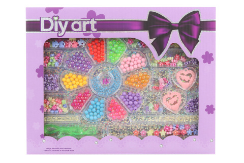 Sada korálků na navlékání. V balení je mnoho barev a druhů korálků a šňůrky na navlékání. Rozměr balení cca 27 x 21 x 2,5 cm. Věk 3+