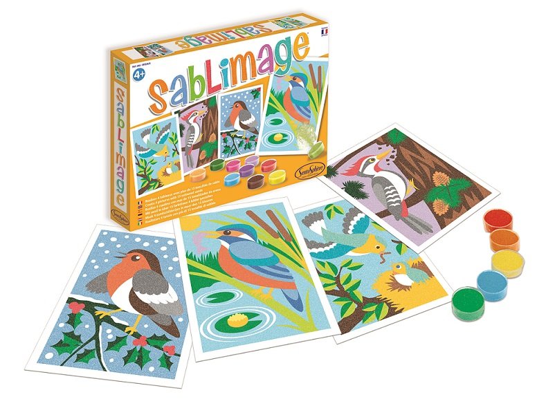 Sada Sablimage: Pískové obrázky - Ptáci nabízí jedinečnou možnost tvoření, která rozvíjí dětskou fantazii a smysl pro barvy bez nepořádku a zbytečného stresu z úklidu. Je to ideální způsob, jak děti zabavit a zároveň podpořit jejich jemnou motoriku a kreativní myšlení.