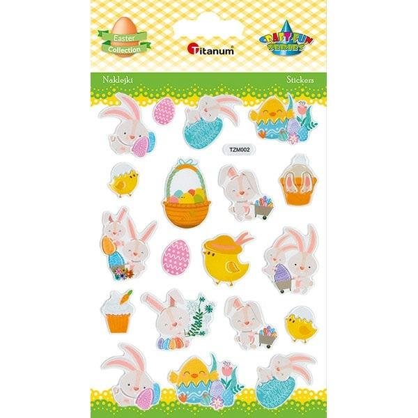 Naklejki wypukłe: zajączki, kurczaczki, pisanki, koszyczek wielkanocny, muffin, 19 sztuk. číst celé
