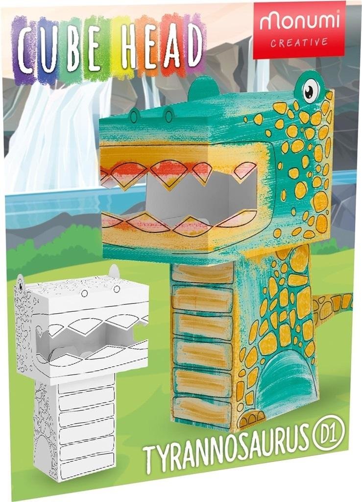 Cube head. Dino. Tyranozaur. Złóż i pokoloruj