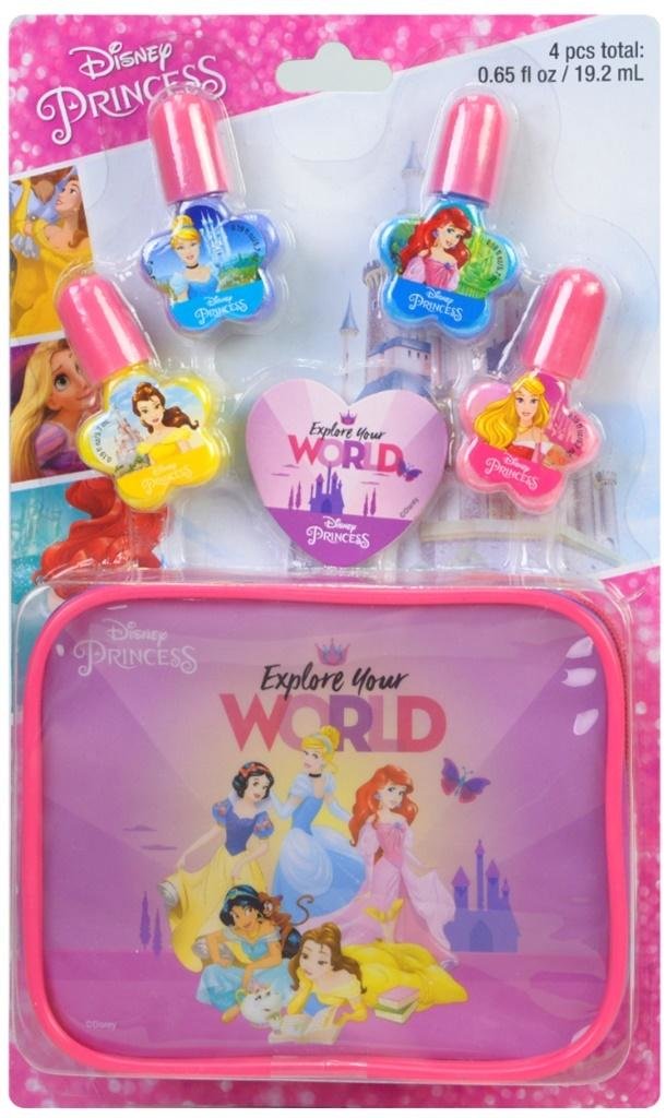 Zestwa lakierów dla dzieci do paznokci z kosmetyczką Princess Zestaw do paznokci , który zawiera 4 lakiery i bufor do paznokci, wewnątrz pięknej torebki z grafiką ulubionych księżniczek Disneya číst celé