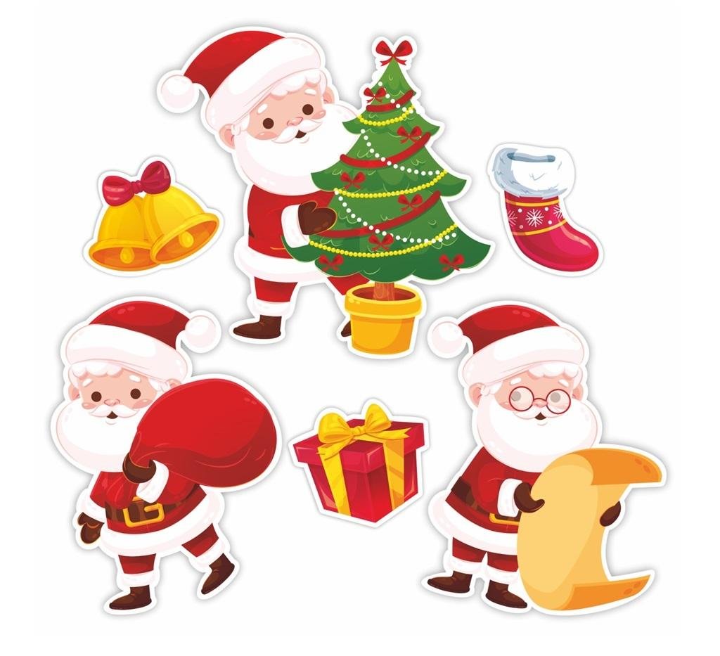 Zestaw składa się z 3 dekoracji mikołajów oraz 3 świątecznych elementów ozdobnych - idealne szczególnie do szkoły i przedszkola.