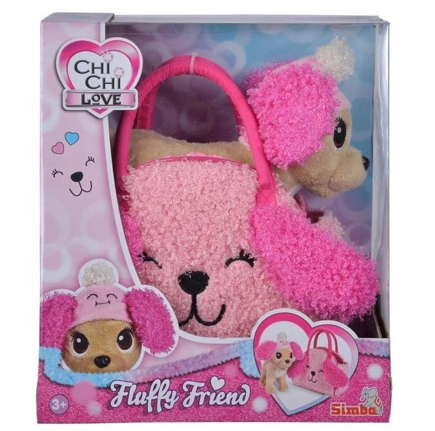 Pluszowy piesek Chihuahua w urokliwej czapeczce z nadrukiem uśmiechniętej buźki i z uszami, która perfekcyjnie koresponduje z torbą z pluszowego materiału, zwracającą uwagę doszytymi uszami.
