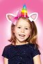Wiele materiałów do stworzenia 5 różnych prac z jednorożcem i tęczą.