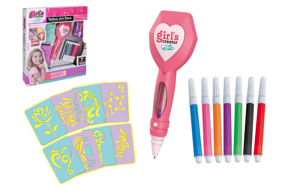 8 šablon s trendy vzory 7x tetovací pera 1x tetovací pero (2xAAA baterie - nejsou součástí balení)