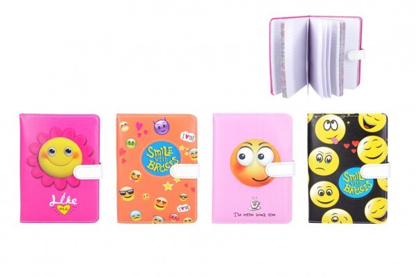 Poznámkový blok Smajlík 128 listů zavírání na magnet 4 druhy ve fólii 14x19cm 12ks v boxu
