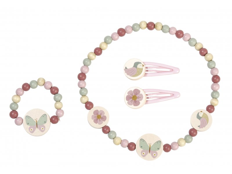 Sada dřevěných šperků Květiny a motýli je součástí designové kolekce Little Dutch, která spojuje kvalitu s jemnou estetikou. Šperky jsou navrženy tak, aby byly bezpečné a vhodné pro děti od 3 let. Navíc je možné je rozšířit o hudební šperkovnici, která doplní tuto okouzlující sadu o další originální prvek.