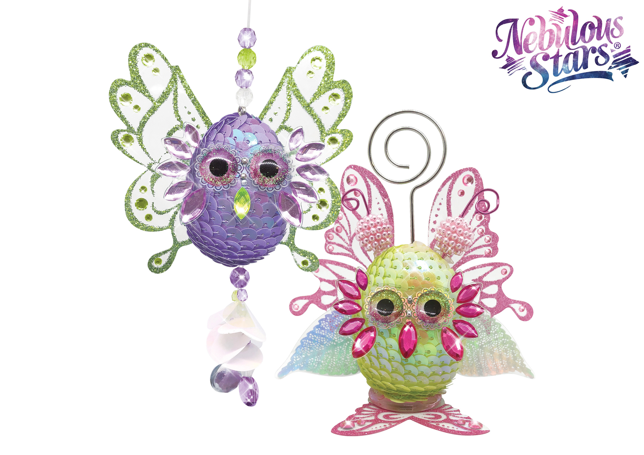 S touto kreativní sadou lze vytvořit 2 třpytivé sovičky Stačí vybrat křidýlka, navléci korálky, přilepit oči a dotvořit barevnými kamínky Skvělá dekorace do každého pokojíčku Sada rozvíjí jemnou motoriku a kreativitu Vhodné pro děti od 7 let