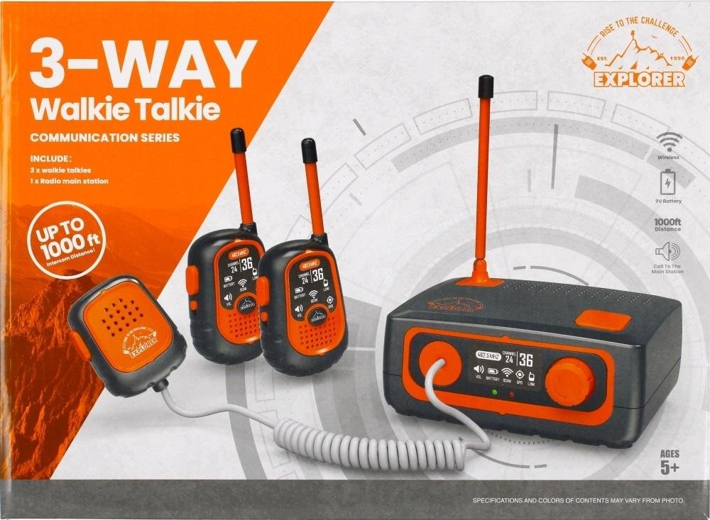 Zalety produktu: odbiornik posiada włącznik i wyłącznik, posiada przycisk który trzeba przycisnąć za nim zacznie się coś mówić oraz gdy skończymy mówić, przez radiostację można informować osoby posiadające walkie tokie. Zestaw Walkie Talkie od MEGA CREATIVE przeniesie Cię w świat tajnej misji. Porozumiewanie się za pomocą dwóch odbiorników to niesamowita zabawa! Zawartość zestawu: 2 x odbiorniki do porozumienia się dwóch oddalonych od siebie osób, radiostacja. Całość wykonana z plastiku. Wymiary/waga/baterie: wymiary produktu (dł. x wys. x gł.) [cm]: radiostacja-14x6x11, walkie talkie-6x14x4, wymiary opakowania (dł. x wys. x gł.) [cm]: 41x30x9, waga produktu bez opakowania [kg]: 0,34 kg, waga produktu w opakowaniu [kg]: 0,63 kg, wymaga zasilania bateriami 3 x 9V- nie załączono do zestawu. Zestaw przeznaczony dla dzieci w wieku: 3+. Pakowany w kartonik.