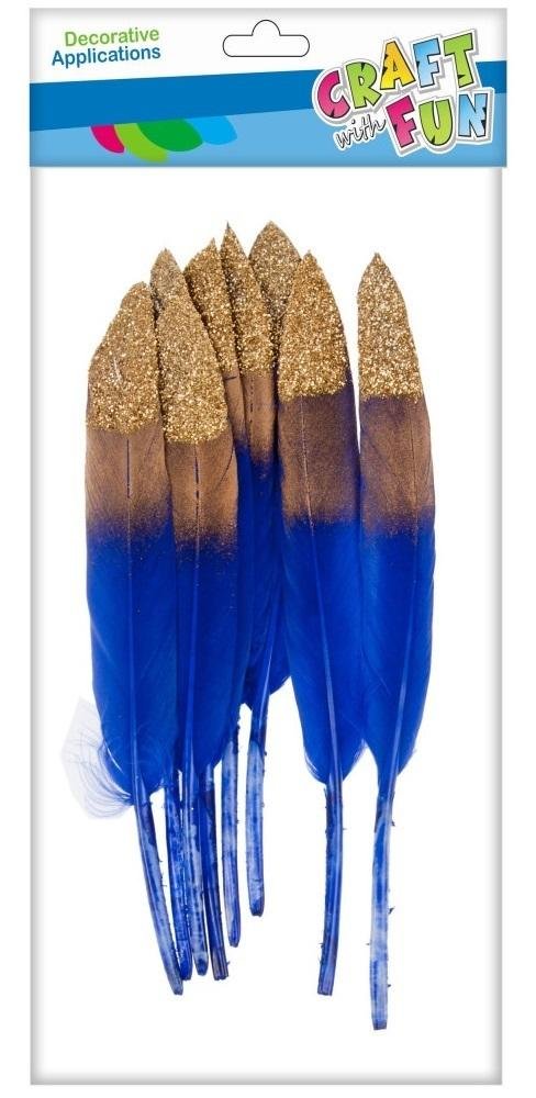 Piórka dekoracyjne 10-15cm złoto/granat 8szt číst celé