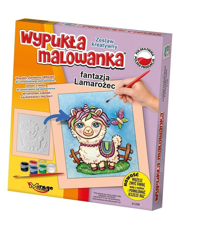 Wypukła malowanka od Mirage Hobby to zestaw kreatywny do malowania dla osób powyżej 5 roku życia. Zestaw zawiera wypukły, plastikowy, kształtny obrazek 3D, 6 farbek wodnych, pędzelek, ramkę z kartonu do postawienia lub powieszenia oraz schemat mieszania kolorów. Zmyj obrazek przy użyciu ciepłej wody, mydła i szczoteczki, najpóźniej do 15 minut po pomalowaniu. Produkt jest wymyślony i wyprodukowany w Polsce! Wszelkie prawa zastrzeżone.