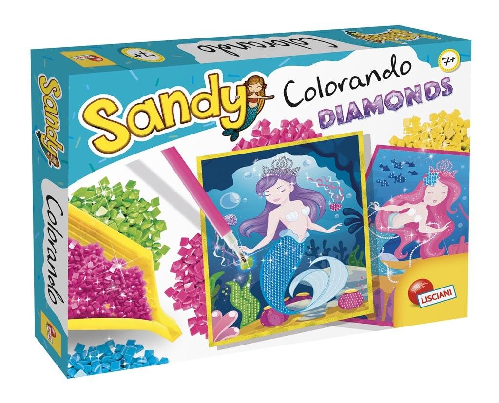 Sandy to niezwykle pomysłowa seria Lisciani, która dzięki rozmaitym aktywnościom pobudza rozwój kreatywności i zdolności manualnych u dzieci. Colorando Diamonds zawiera zestaw z zaprojektowanym płótnem, jasnymi i kolorowymi małymi diamencikami. W opakowaniu znajdują się również przydatne akcesoria do naklejania ich na rysunkach zgodnie z ponumerowanymi liniami.
