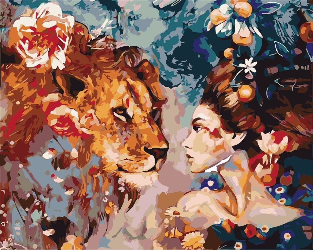 Malowanie po numerach - Kobieta z Lwem 40x50cm