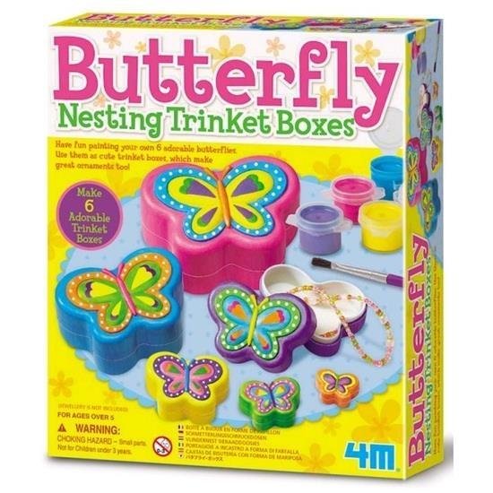 Baw się malują 6 uroczych motyli, a nastęonie użyj ich jako ozdobne pudełka do przechowywania drobiazgów!Zawartość:6 ozdobnych puzderek z motylkami1 pasek z 6 farbamipędzelekszczegółowa instrukcja