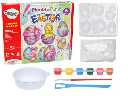 Zestaw Kreatywny DIY Gips Odlewy Świąteczne Malowanie Jajek Wielkanoc Twój maluch jest małym artystą? Uwielbia malować i ozdabiać. Mamy coś dla niego! Zestaw do tworzenia odlewów gipsowych z farbami pozwoli mu odrywać świat i samodzielnie tworzyć jego barwy. Zabawka nauczy koncentracji na odlewie oraz umiejętności uczenia się i łatwego przyswajania wiedzy. Małe elementy ćwiczą precyzję i koordynację, co zaprocentuje również w szkole. Zestaw pozwala na samodzielne stworzenie gipsów poprzez dołączony do zestawu proszek gipsowy. Foremki mają wzory jajeczek wielkanocnych z kurczaczkiem bądź króliczkiem. Kolejną czynnością będzie pomalowanie farbami jajeczek, a dołączone do zestawu magnesy pozwolą na zawieszenie pięknych odlewów na lodówkę. Idealnie nawiązują do Świąt Wielkiej Nocy. Kupując ten zestaw, pozwolisz maluchowi stworzyć własne ozdoby domowe i poczuć zbliżające się święta. Elementy zestawu: - forma 6 różnych wzorów - proszek gipsowy - magnes - pręt do mieszania - kubek do mieszania - 6 kolorów farb - pędzel do malowania - szczegółowe instrukcje Wymiary opakowania: 27 cm x 23 cm x 6 cm Zabawka odpowiednia dla dzieci powyżej 5 roku życia. Posiada certyfikat CE.