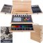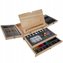 - Přenosnost: Pevný dřevěný kufřík s madlem a rozkládacím stojanem umožňuje malovat kdekoliv.