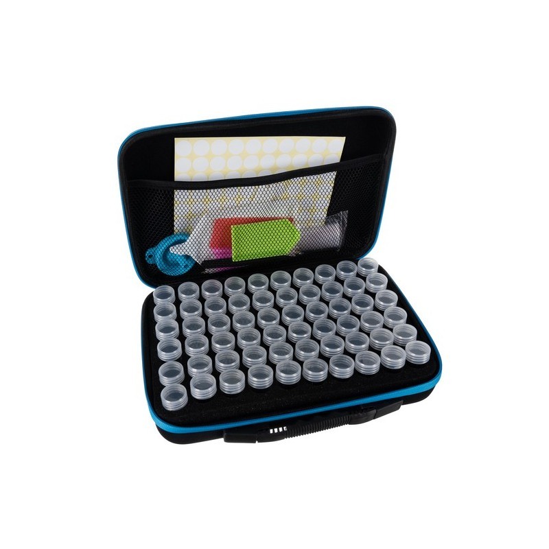 Elegantní černé pouzdro s pohodlnou rukojetí nabízí snadný přenos a perfektní ochranu všech potřebných pomůcek na diamantové vyšívání. Díky pevnému zipovému uzavírání a vnitřní struktuře se speciálními výlisky na dózy na diamanty i kapsou na příslušenství budete mít vše vždy hezky na svém místě. Sada obsahuje nejen obaly na diamanty, ale také praktické pomůcky, které vám pomohou s precizním přilepováním a zarovnáváním diamantů, a tak vaše práce bude ještě přesnější a příjemnější.