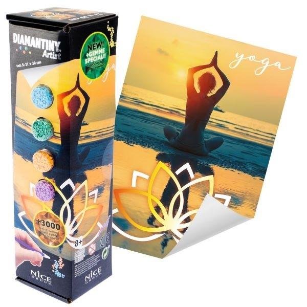 Zestaw z kryształkami do tworzenia mozaiek z kolorowymi kamieniami. Zabawa z mozaiką diamentową polega na układaniu obrazka z tysięcy malutkich, kolorowych diamencików według naniesionego na kartonie nadruku.Obrazek pokryty jest warstwą klejącą, która utrzymuje kryształki na odpowiednich miejscach. Kompletny zestaw do wykonania mozaiki zawiera: obrazek nadrukowany na grubym płótnie, na którym naniesione są literki i cyferki wskazujące miejsca, gdzie należy ułożyć poszczególne kolory; diamenciki w różnych kolorach; aplikator z woskiem, pojemnik na diamenciki oraz przewodnik po kolorach.