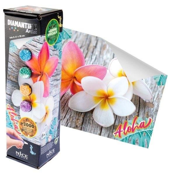 Zestaw z kryształkami do tworzenia mozaiek z kolorowymi kamieniami. Zabawa z mozaiką diamentową polega na układaniu obrazka z tysięcy malutkich, kolorowych diamencików według naniesionego na kartonie nadruku.Obrazek pokryty jest warstwą klejącą, która utrzymuje kryształki na odpowiednich miejscach. Kompletny zestaw do wykonania mozaiki zawiera: obrazek nadrukowany na grubym płótnie, na którym naniesione są literki i cyferki wskazujące miejsca, gdzie należy ułożyć poszczególne kolory; diamenciki w różnych kolorach; aplikator z woskiem, pojemnik na diamenciki oraz przewodnik po kolorach.