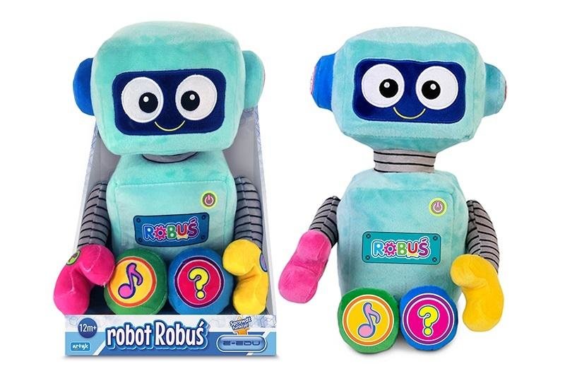 Robot Robuś E-Edu nabízí rozmanité funkce, které děti nejen pobaví, ale i rozvíjejí jejich paměť a kreativitu. Po stisknutí tlačítek s čísly robot diktuje jednu ze šesti říkanek, zpívá šest různých písniček a vyzývá děti k řešení sedmi hádanek s odpověďmi. Kromě toho robot postupně vypráví další různé říkanky. Například pravá ruka slouží jako tlačítko s říkankami, levá noha postupně vypráví více básniček a levé ucho funguje jako chrastítko. Pravé ucho vydává šustivý zvuk, který podněcuje dětské smysly. To vše ve velikosti 19,5 × 31 × 18,5 cm, ideální do dětských rukou.