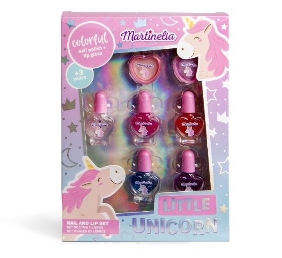 Zestaw kosmetyków dla dzieci zawiera 5 lakierów do paznokci, 2 błyszczyki do ust. číst celé