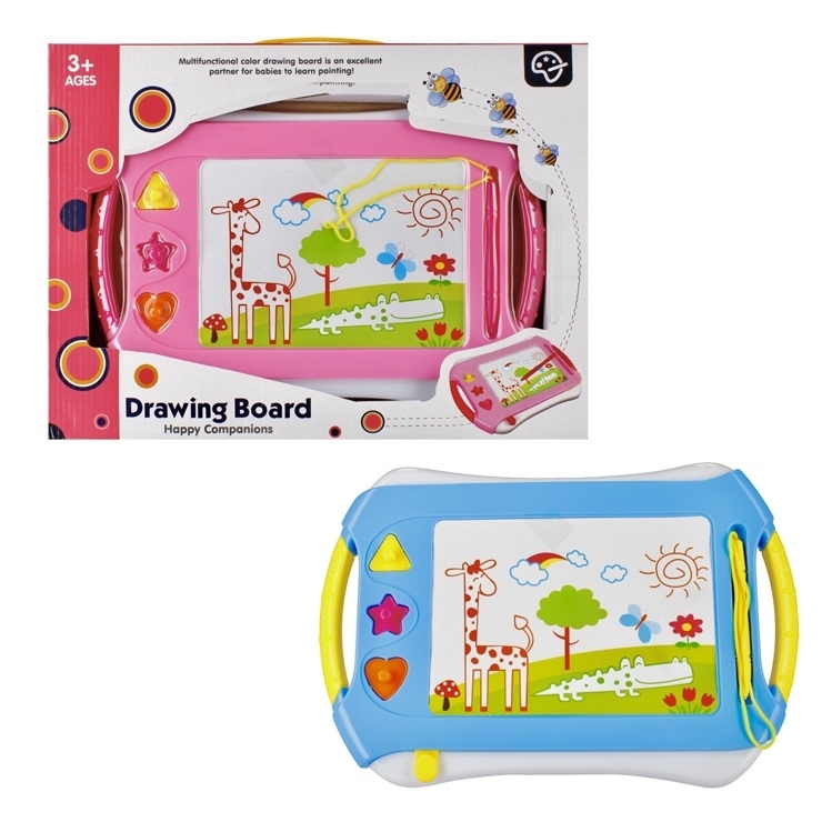 Barevný zápisník je nejlepší nápad, jak naučit své dítě kreslit. Nemusíte se bát, jestli bude linka rovná nebo zakřivená, pokud se něco pokazí, jedním pohybem ji jednoduše smažete. Tento zápisník má speciální nátěr. Zápisník s příslušenstvím může být povrchem, na kterém vznikne první umělecké dílo vašeho dítěte. Balení obsahuje magnetický zápisník, pero a 3 razítka. Dodává se ve dvou barvách: růžová, modrá. Rozměry balení jsou 41x30x3cm. Hračka je určena pro děti ve věku 3+.