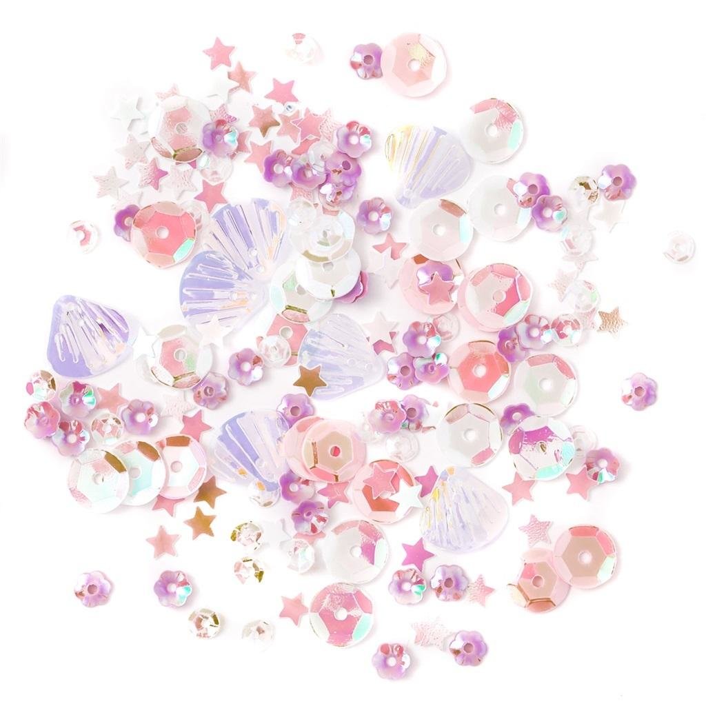 Mix cekinów opalizujących "Unicorn" to niesamowita kompozycja składająca się z wyjątkowych kształtów i kolorów. Zestaw ten zawiera aż sześć rodzajów cekinów. Znajdziesz w nim klasyczne, okrągłe (w dwóch rozmiarach i aż trzech wariantach kolorystycznych), muszelki oraz drobne kwiatki i gwiazdeczki. Cekiny z kompozycji "Unicorn" urzekają swoimi opalizującymi odcieniami w kilku różnych kolorach różu.