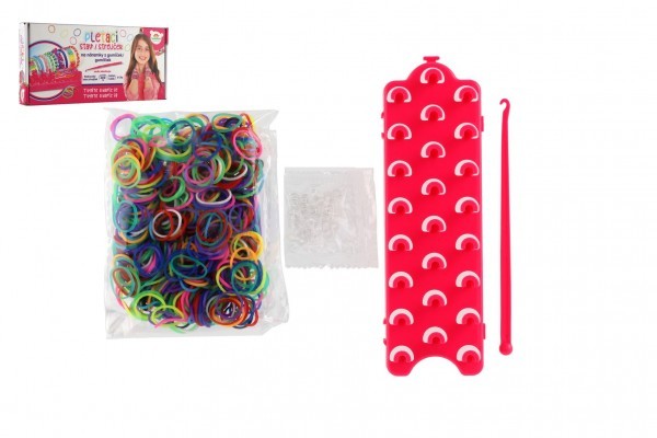 Udělej si svůj náramek - gumičky 600ks + náčiní + pletací stav na náramky v krabičce 27x13x4cm
