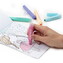 Malowanie kropkami to wyjątkowa kolorowanka, w której obrazki tworzone są za pomocą małych kropek. Zestaw Kidea zawiera kolorowankę z 10 arkuszami z magicznymi obrazkami wróżek oraz 5 dwustronnych flamastrów ze stempelkami o pastelowych kolorach różowym, niebieskim, fioletowym, żółtym i zielonym. Końcówka flamastrów jest zaokrąglona i krótka, co ułatwia malowanie kropek na obrazkach. Stempelek na drugiej końcówce pisaka jest samotuszujący, dzięki czemu nie trzeba używać dodatkowej poduszki z tuszem. Malowanie kropkami to technika, która rozwija u dziecka koordynację ręka-oko, poprawia sprawność manualną, uczy koordynacji, a przede wszystkim, rozwija wyobraźnię.
