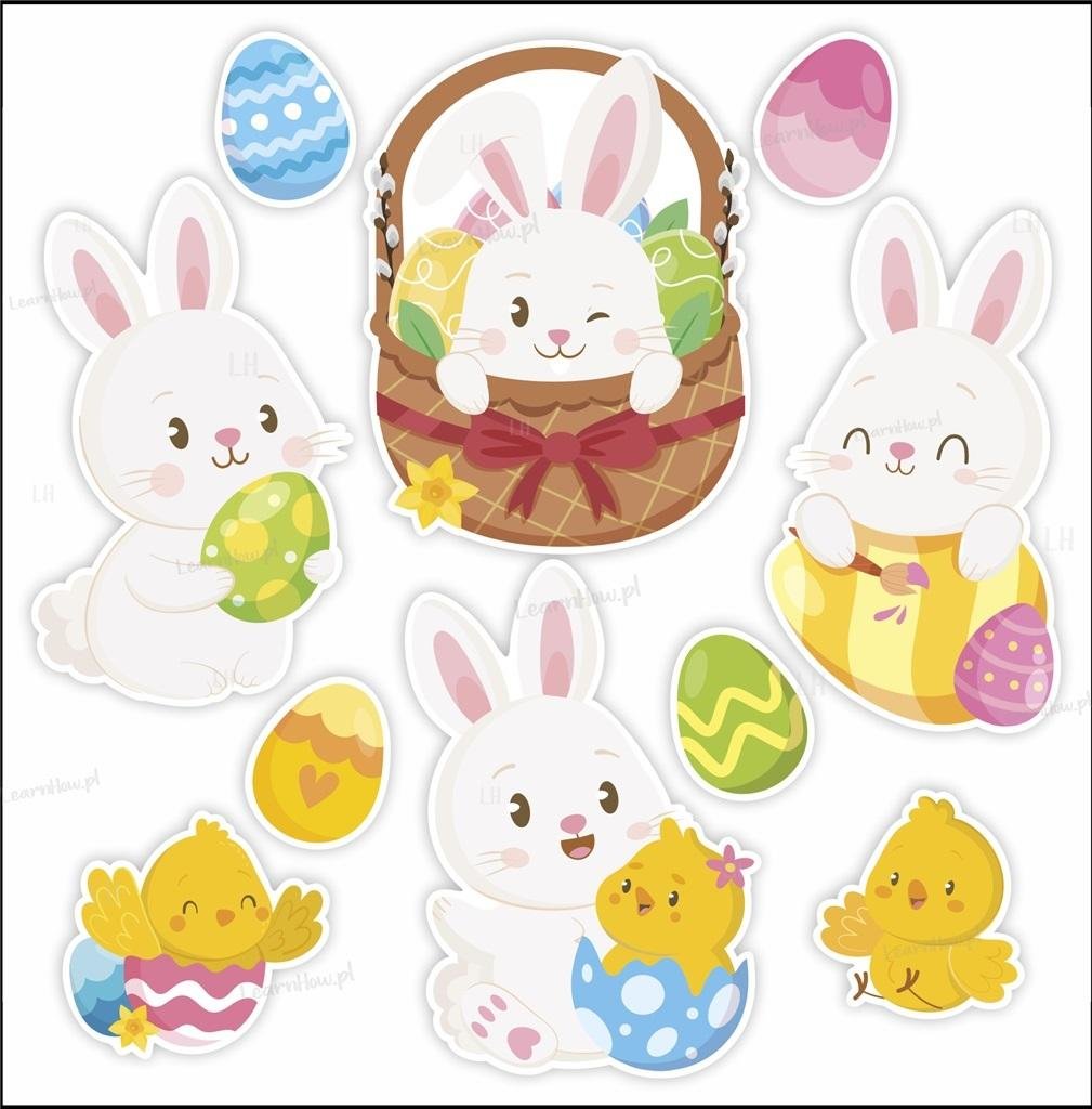 Zestaw składa się z 4 dużych zajączków, 4 pisanek oraz 2 kurcząt - idealny zestaw do Wielkanocnej dekoracji szkoły i przedszkola.
