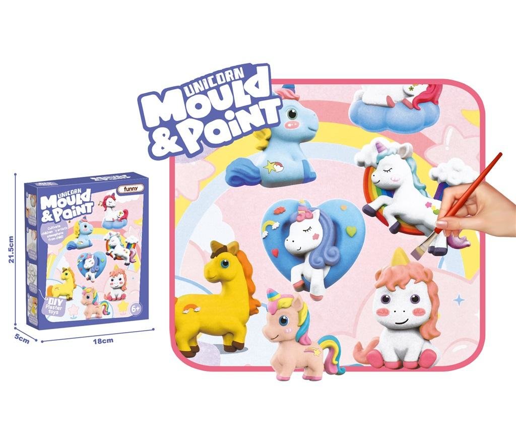Gipsowe odlewy jednorożców do malowania. Farby i pędzle w zestawie. číst celé